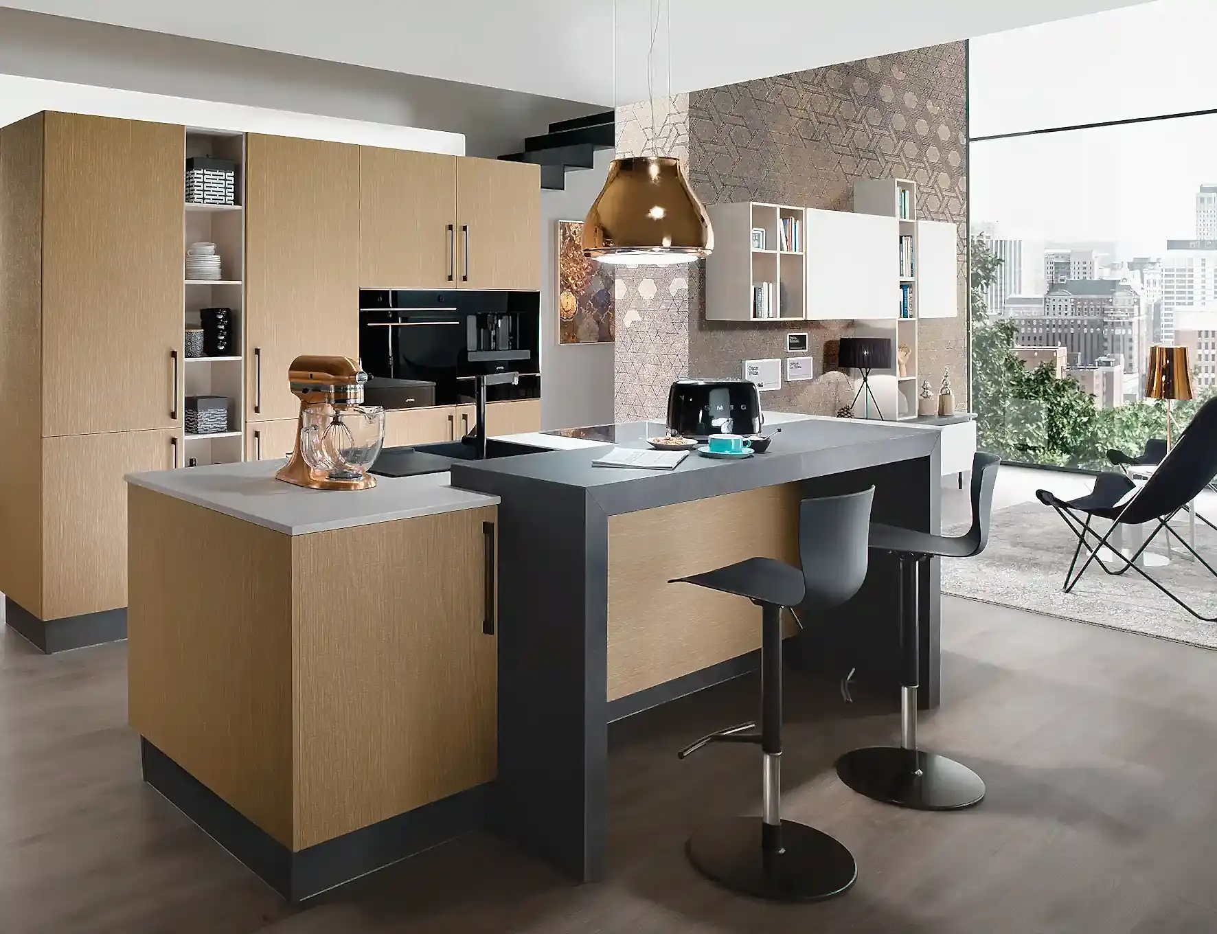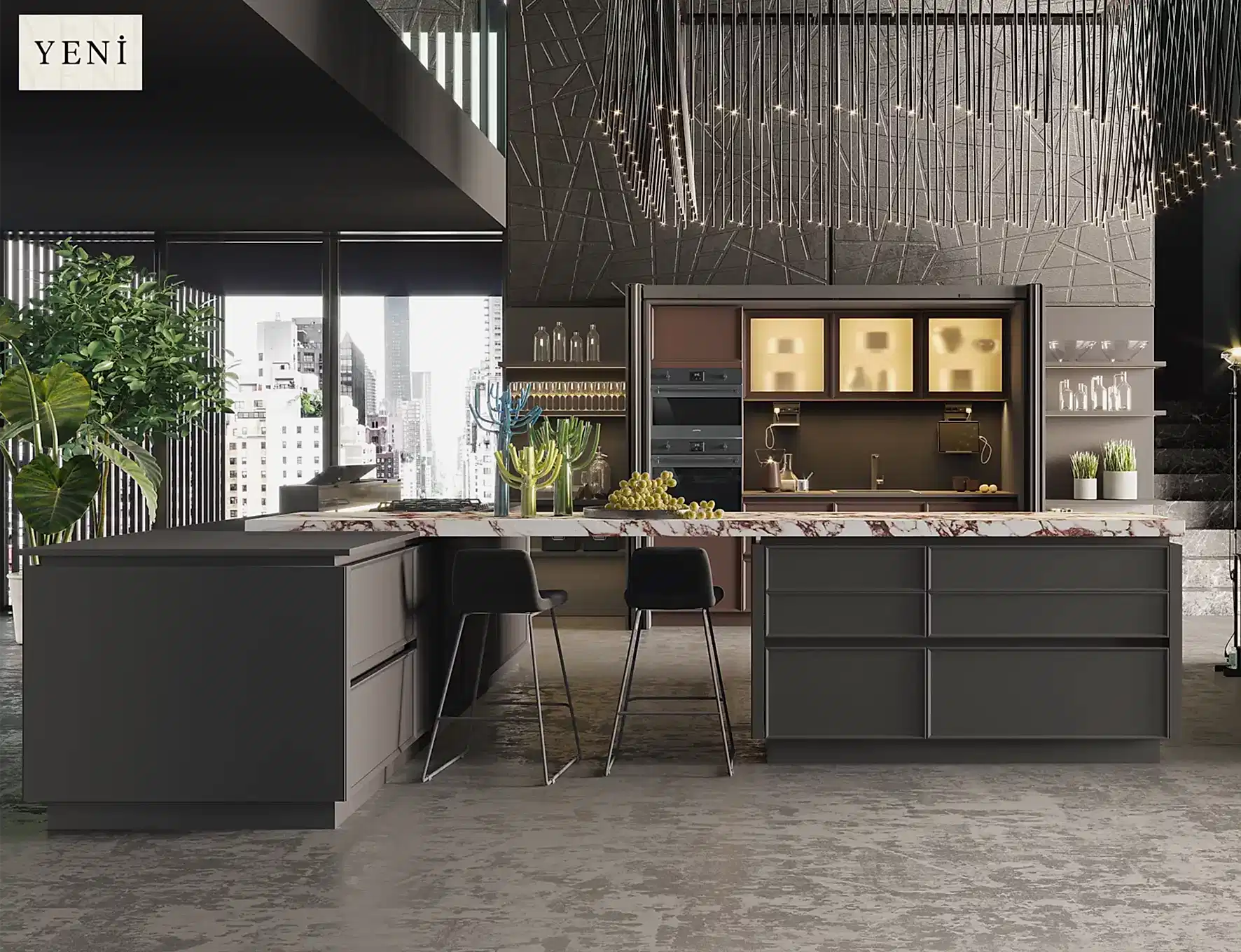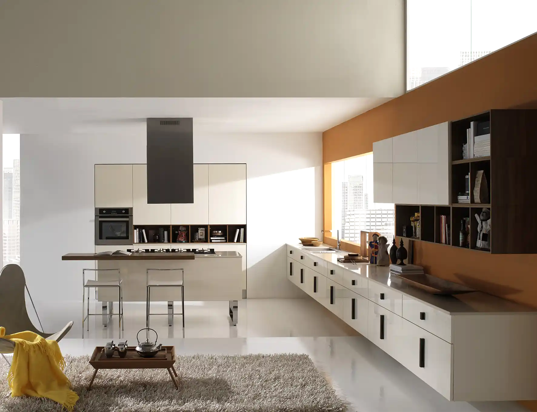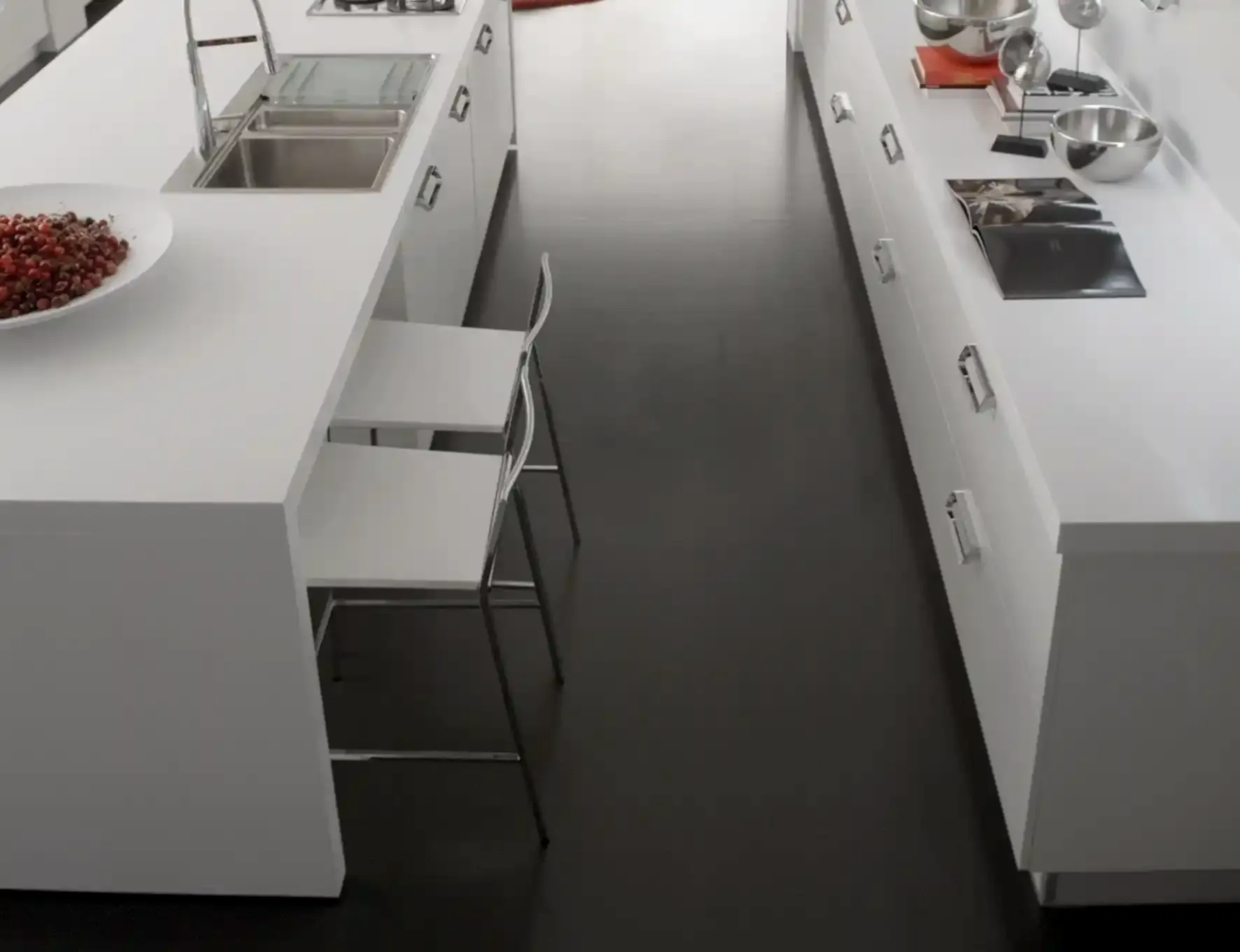 - Kulp, oturma alanı, tezgâh türü, kapak açılım sistemleri ve raf modelleri, mutfakta modern bir etki yapar.