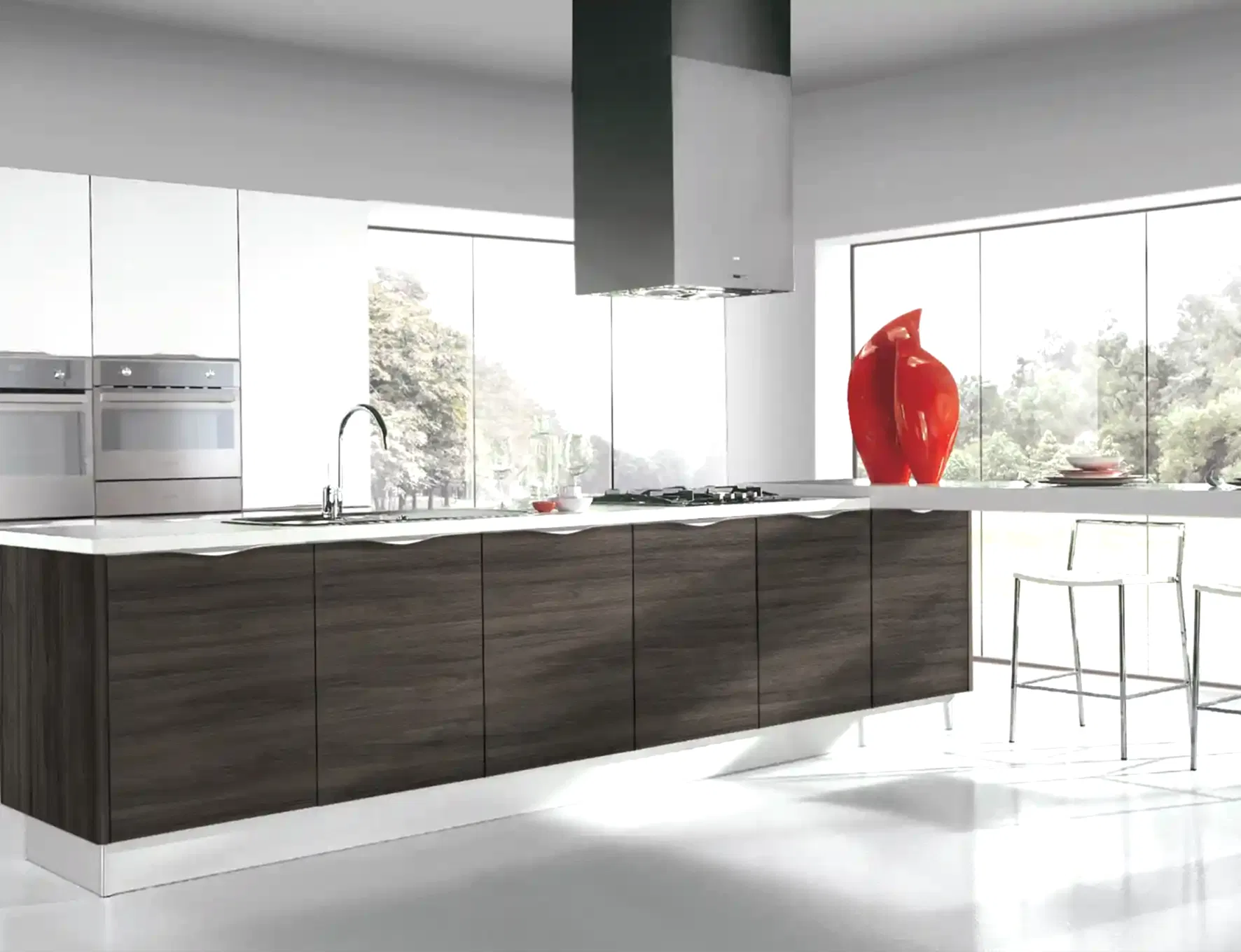 - Modern mutfak modellerinde yer alan adalar, depolama ve dinlenme için kullanılabildiği gibi güçlü bir dekoratif etki de yapar.