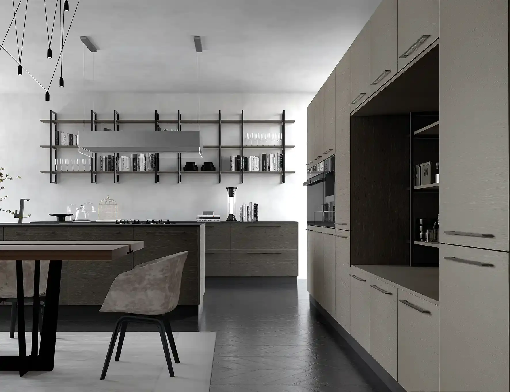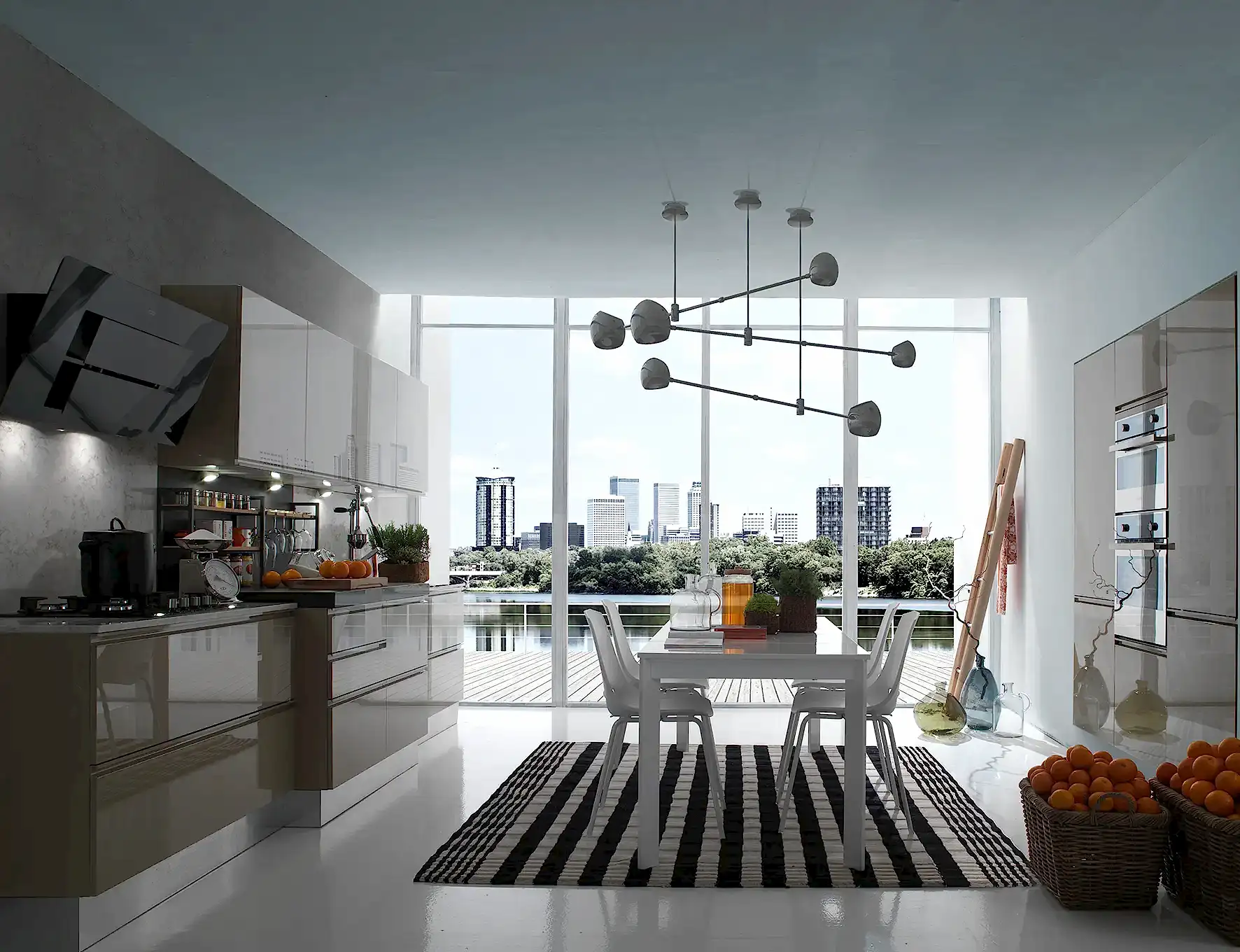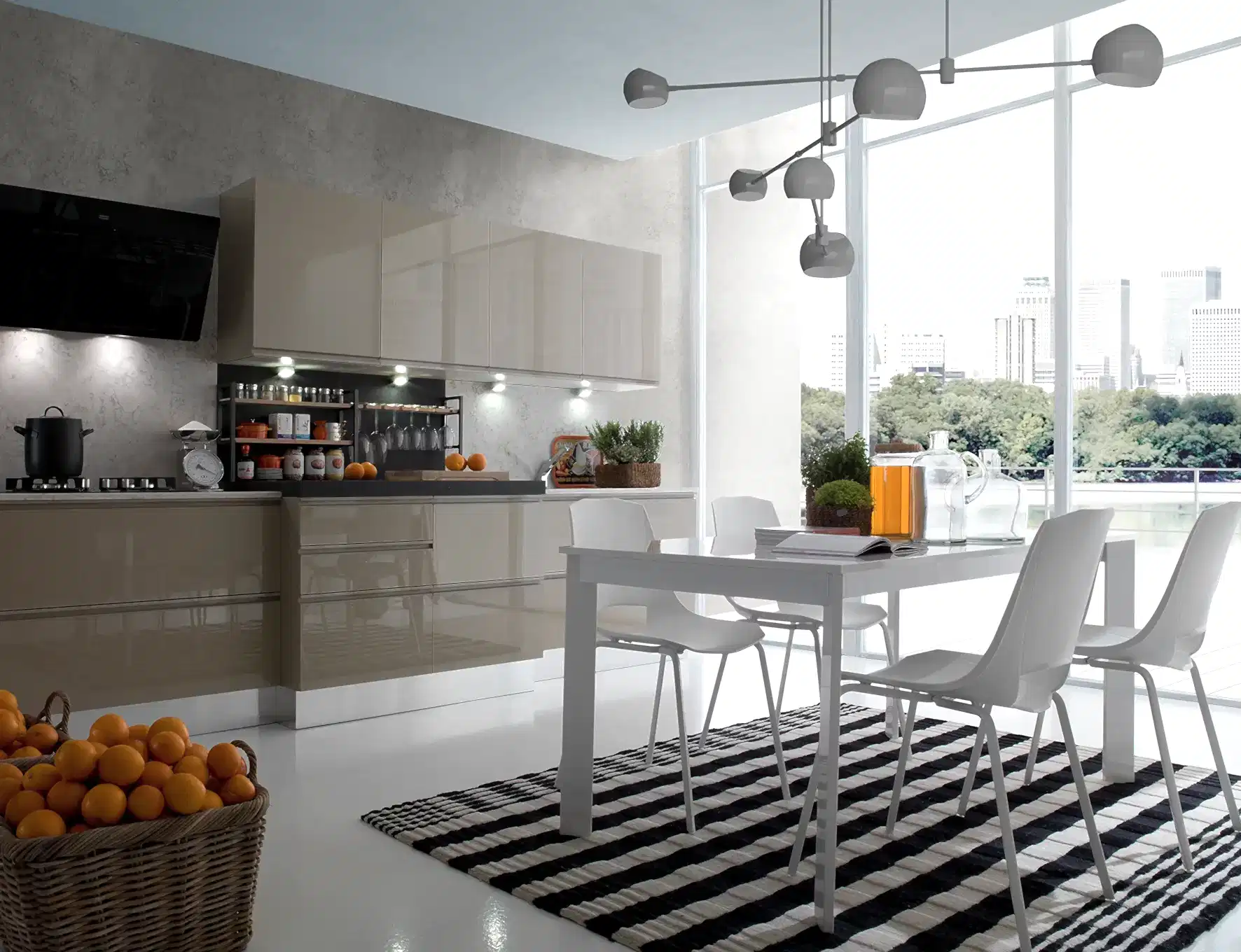 Düzenli bir görünüm imkânı sunan modern mutfak tasarımları, yaşam alanlarının sadece yemek pişirilen bir alan olmanın ötesine taşır. Diğer yaşam alanlarıyla kusursuz bir bütünlük sağlar. Minimalizmin etkisi ile huzurlu ve davetkâr mekanlar yaşam alanlarına dönüşür. Detaylarla zenginleştirilen dolap, raf ve çekmece sistemleri, işlevsel depolama alanları, hayatınıza pratik bir dokunuş ekler.